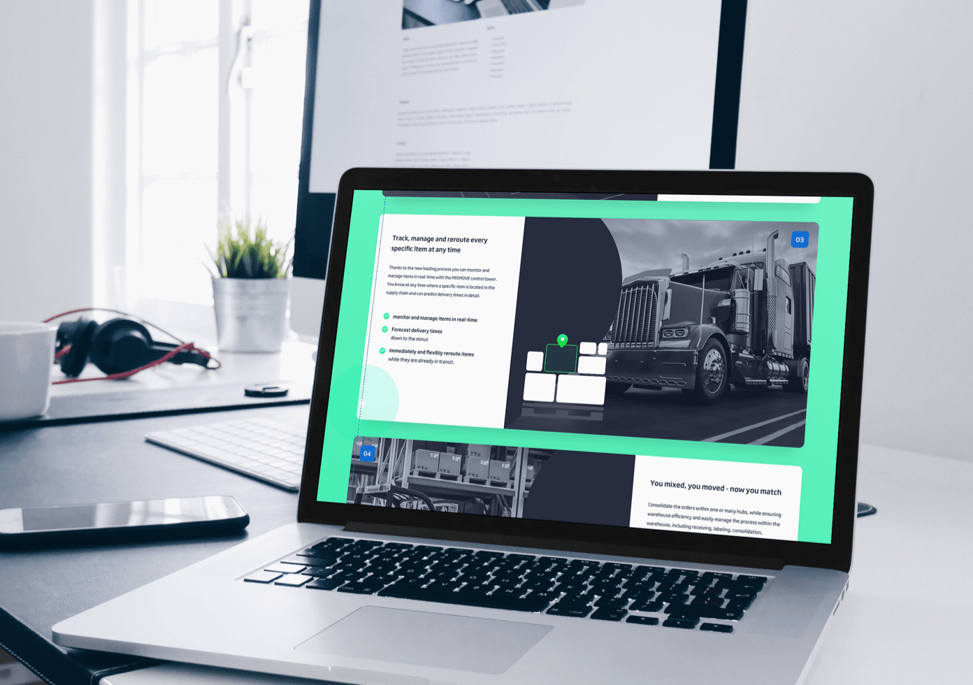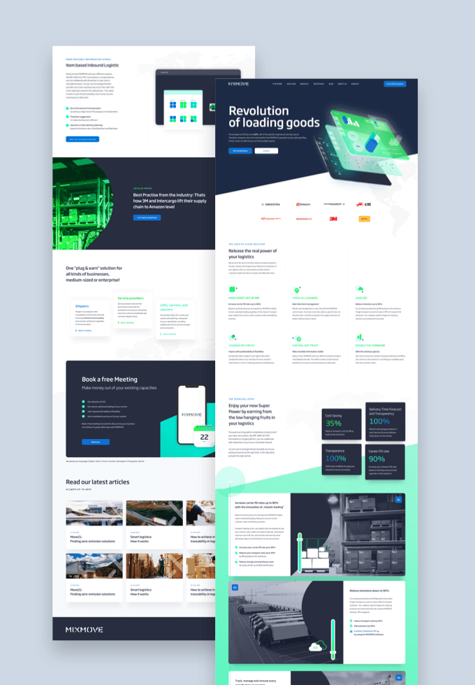 Mixmove, ein führender Anbieter von Cloud-Software für die Logistik, vernetzt Systeme, um Unternehmen eine beispiellose Transparenz und Kontrolle über ihre Transport- und Logistik-prozesse zu bieten. Durch den Einsatz der innovativen Lösungen von Mixmove können Unternehmen ihre Rentabilität steigern und gleichzeitig die CO2-Emissionen erheblich reduzieren. Ich wurde ich mit der Neugestaltung der digitalen Präsenz von Mixmove durch das Design einer neuen responsiven Website beauftragt, die ein modernes Markenerlebnis bieten sollte.